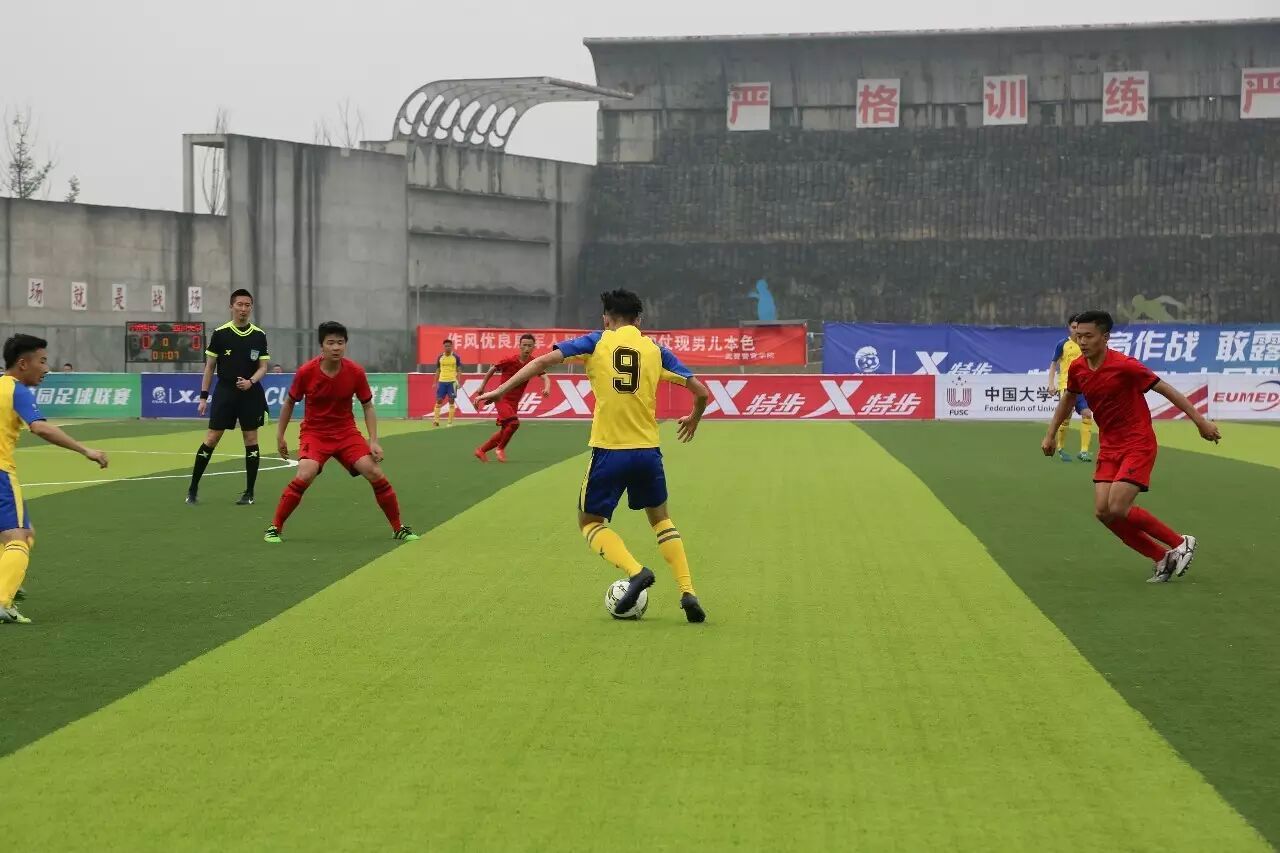 失去了梁佑才并且一球落后的川大改为打三后卫,由汪鎏李建华陈泓光三人搭档组成的后防线配合积极回放的杨天给人一种稳稳的安全感,而被解放出来的杨扬获得了更多自由活动的空间从而使得川大的前场能够从各个角度制造威胁。开场仅三分钟川大就获得机会,周家仙直塞左路马云龙,马云龙带球进入禁区传中,但非惯用脚的束缚和对方中路多名防守队员的封堵使这次进攻没能造成威胁。随后川大又在右路发威,陈泓光插上后45度传中精准找到禁区中的杨扬,杨扬起跳头球攻门,但由于起跳过高杨扬没能顶正部位使得射门力量较小。紧接着是川大中路的小配合,聂羽鑫周运浩努尔江禁区前连续小配合渗透进入禁区,努尔江在禁区中连续盘带吸引防守,随后回作周运浩,周运浩不停球直接打门,皮球稍稍偏出立柱。58分钟对方球员快速开出界外球得球进入禁区,传中找后点插上的球员,后点队员单刀机会选择左脚推射球门,张东平预判出色将皮球没收。下半场比赛接近60分钟,川大换下聂羽鑫换上文永恒来增加对球权的控制。杨扬通过积极的前场传跑拿球制造了很多威胁,并且多次被对方防守队员侵犯制造定位球。61分钟川大获得位置不错的定位球机会,周运浩主罚。观察到门将站位过于靠右,周运浩打出球速极高的弧线球攻击球门左侧下角,门将措手不及只得用脚挡出这脚射门。随后川大换上鲁继文换下马云龙来提高左路的冲击力。65分钟杨扬前场接高球后,直接凌空抽射,射门质量极高,可惜高出横梁些许,没能取得进球。67分钟鲁继文左路依靠速度突破,穿裆直塞中路的文永恒,文永恒等杨扬插上后再次向前传递,杨扬禁区内拿球被3人包夹后断球,鲁继文接到解围后凌空抽射,皮球再次高出球门。78分钟对方左路任意球开到小禁区和点球点之间,张东平出击,对方前锋抢在张东平之前接到下落的皮球头球攻门,球滚入球网。川大0比2落后。两球落后的川大几乎开始用全部的力量进攻。时间已经所剩无几。81分钟川大开出中场任意球,文永恒禁区内停球转身,连贯的凌空抽射,球偏出球门。川大用林志滨换下杨天。45分钟杨扬禁区内控球,然后摔倒在禁区内,裁判未做表示。补时阶段,周运浩远距离任意球攻门,打出高质量电梯球直奔左上角,但门将扑救及时将球扑出。随后的比赛中川大再无机会。全场比赛结束。