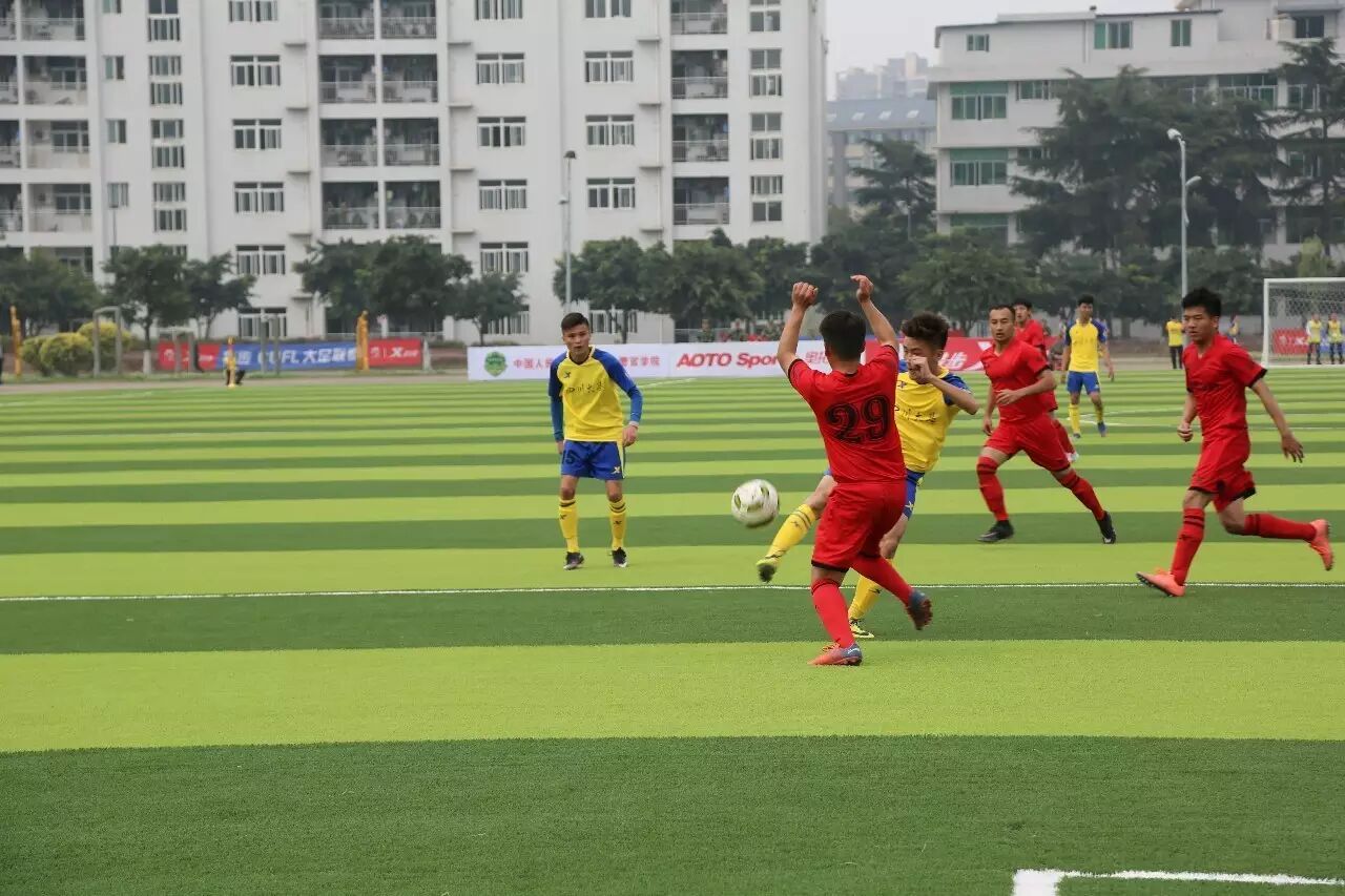 川大---雄起,雄起,雄起!随着这振奋人心的口号,比赛开始。对手的阵型像极了魔力鸟的铁桶,4个后卫两个后腰几乎不会通过中场线,川大稳住阵脚后场控球,耐心寻求撕破对手防守的细微突破点。但是,比赛的第三分钟,意外发生了。对方利用防守反击制造了左路任意球,开高球找后点。后点的球员头球攻门打在立柱上,皮球弹到中路,对方球员捡漏补射,而在后点的张东平没有回到球门的时间,球被打进。川大一球落后。也许是急于扳平比分,丢球后的川大一度显得有些冒失。努尔江多次右路尝试自己突破,靠个人能力打穿了对方左路的防守,但由于防守过于密集不能获得攻门的机会。