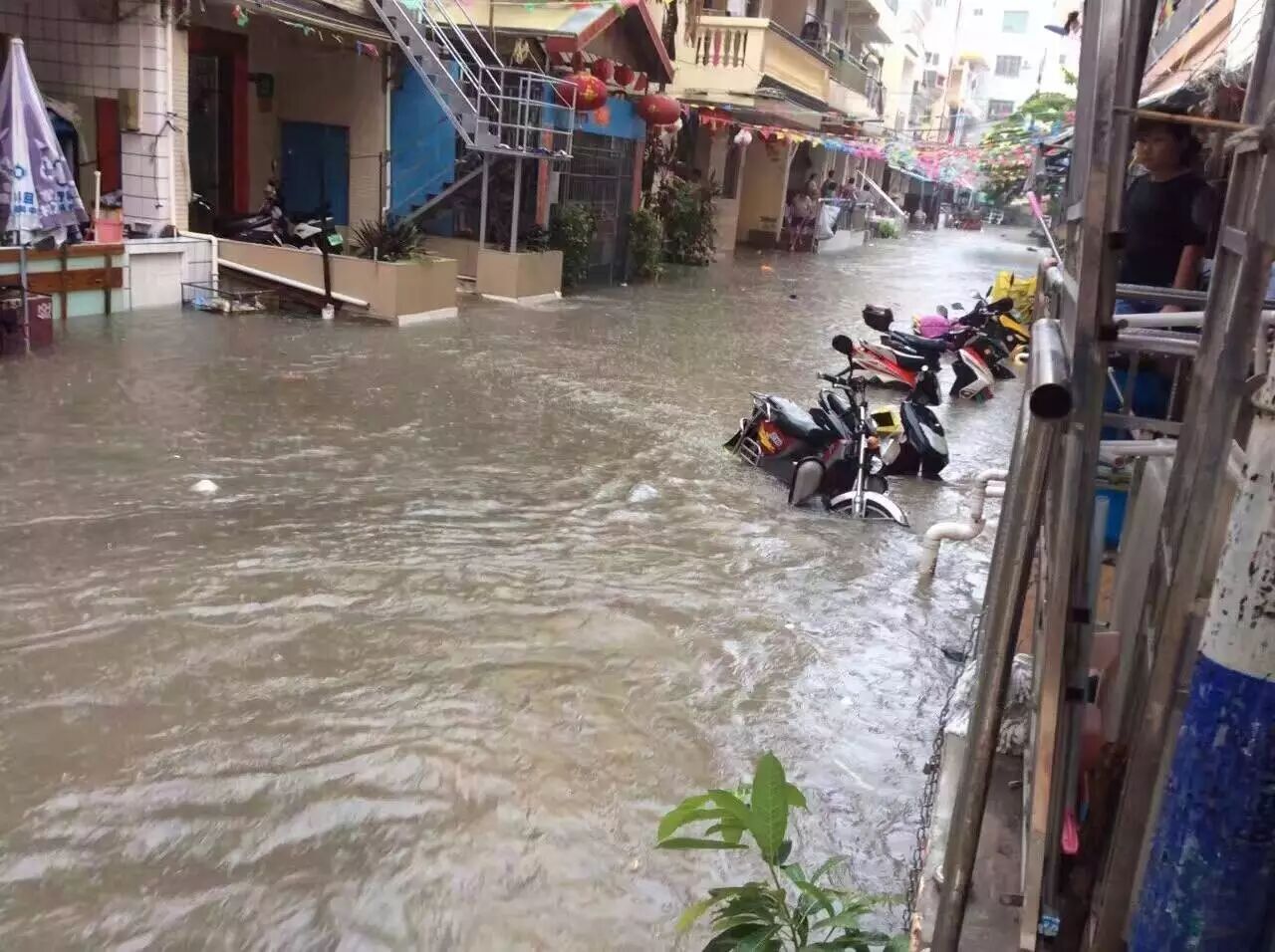 三亚胜利路段已成汪洋大海“