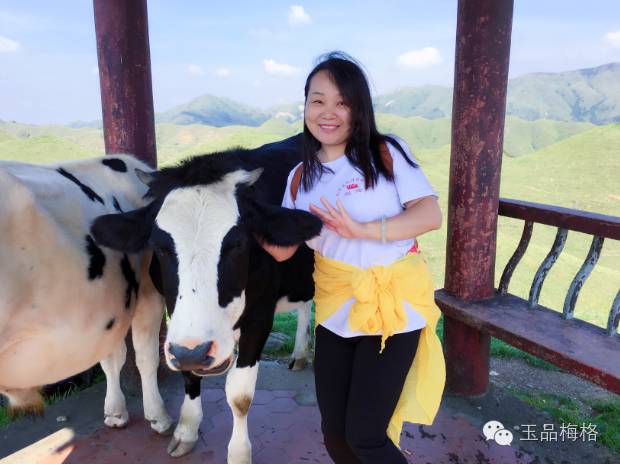 。站在山下仰望,蓝天白云里飞檐翘角的亭阁疑似天上的琼楼。沿着镶嵌在草地上的石级缓缓而上,人如走在一条绿海中的灰色飘带上。登上亭阁,意外之喜是早有饱餐过后的奶牛群丰满着在亭阁里或交颈相抚,或甩尾息养。无数男女游客在惊喜中与它们贴身相拥,或抱其颈首合影,或为其尾毛疏理,牛亦温顺体贴,尽满人意。此番情景恐为南山牧场所独有!