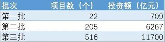 财政部全国PPP综合信息平台项目库(下简称项目库)于2016年初正式启动运行。截至2016年12月末已推出3批国家示范项目。其中,2014年第一批22个,投资额709亿元;2015年第二批205个,投资额6267亿元;2016年第三批516个,投资额1.17万亿元。