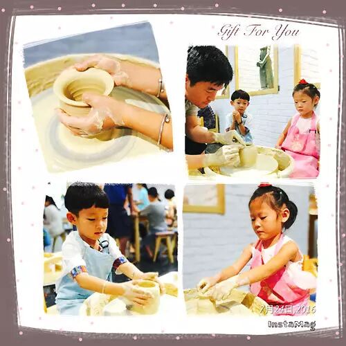 陶艺小白玩泥巴,两个小朋友明白了,看起来容易的事情,实际很有技术含量,单单一个拉高,老师说就得要几年的功力。