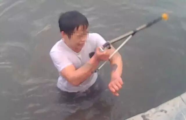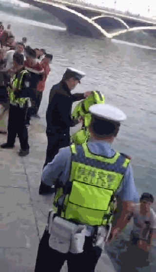 ▲ 现场群众拍下的视频动图:男子站在河边跟岸上的警察进行交涉