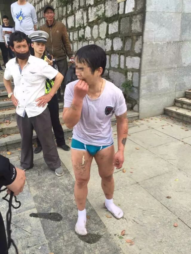 据网友透露,被制服的男子大概20岁左右,腿上有纹身,还有很多疑似针孔的黄豆大的淤斑。