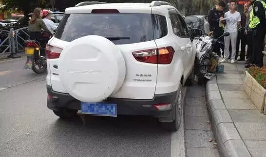 ▲ 男子剐蹭了三辆小轿车之后被卡倒在地