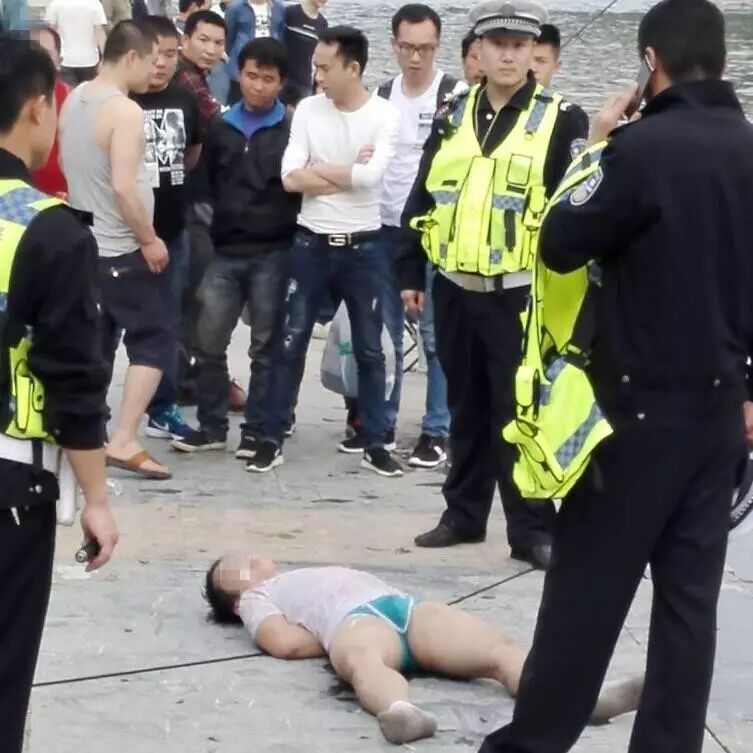 ▲ 现场群众拍下的视频截图:男子跳入江中后游了一段距离,河堤上是围观的群众以及处理案情的警察蜀黍