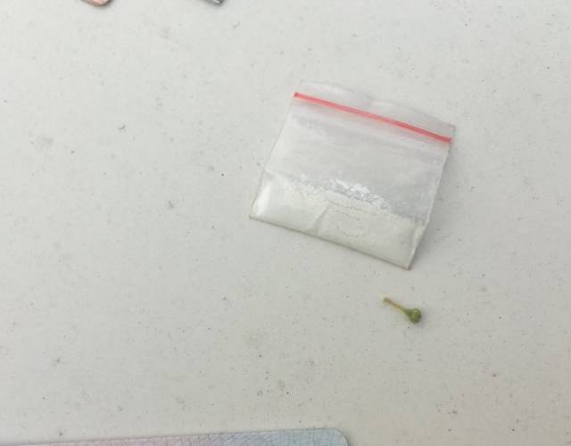 ▲ 民警从男子身上搜出的一包疑似毒品的白色粉末