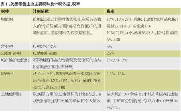 依上述统计模式,我们来看药品零售企业,其税负依小口径计算,主要由缴纳营业税、企业所得税、城市维护建设税等带来;如果依中口径计算,可在小口径基础上加上为企业员工缴纳的社会保险费及住房公积金;如果依大口径计算,则需在中口径基础上,加上各类杂费,比如教育费附加、文化事业建设费、河道维护建设费、防洪费等。(参看表1)