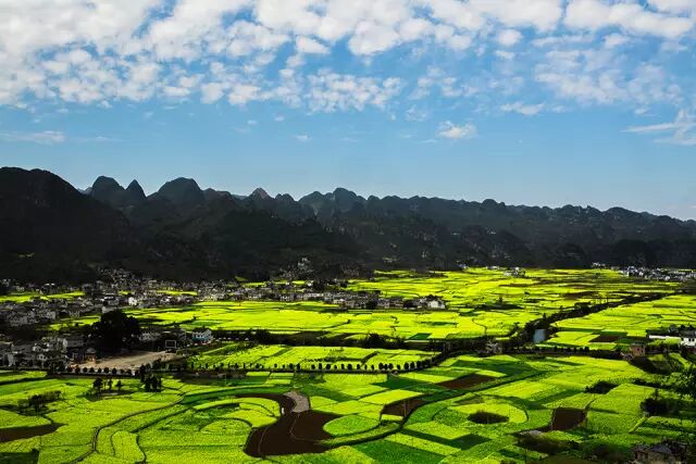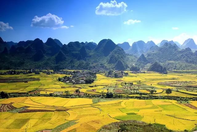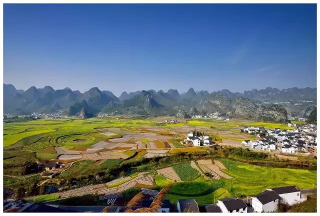 在以梯田而著称的贵州省,难得有这样大面积平坦的农田,而且山是山,田是田,绝不掺和。