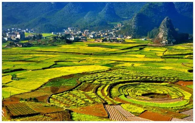 更令人叫绝的是,一块八卦形状的农田,,成为万峰林下农田中最惹人注目的亮点。它的主人何以为之,而又意为如何,只有天晓得。