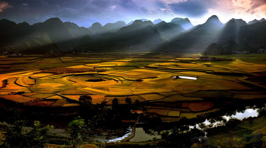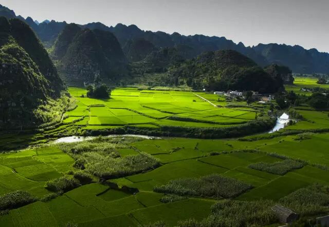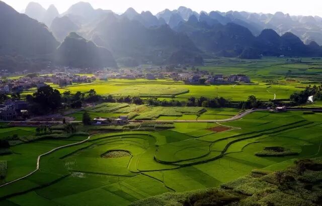 天下田园何其多,镜头里田与山、河与村的无瑕组合让人惊呆:老天爷如此偏爱于斯,这里山峰嵯峨,皆成柱状,如从田中破土而出的石笋。