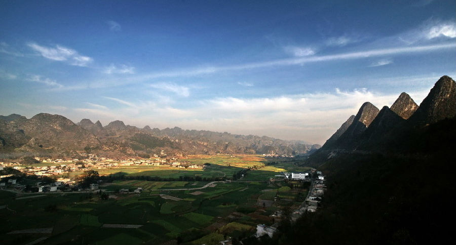 在这里,布依族人硬是在东边的半山腰上开出了一条观峰大道,让游客登高临远,一览无遗。
