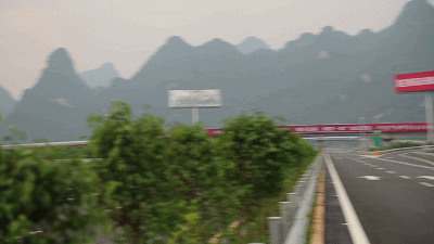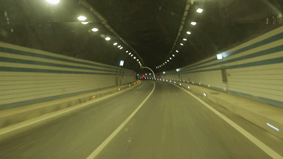 “崇靖高速公路,苦不苦,隧道里面看瀑布;