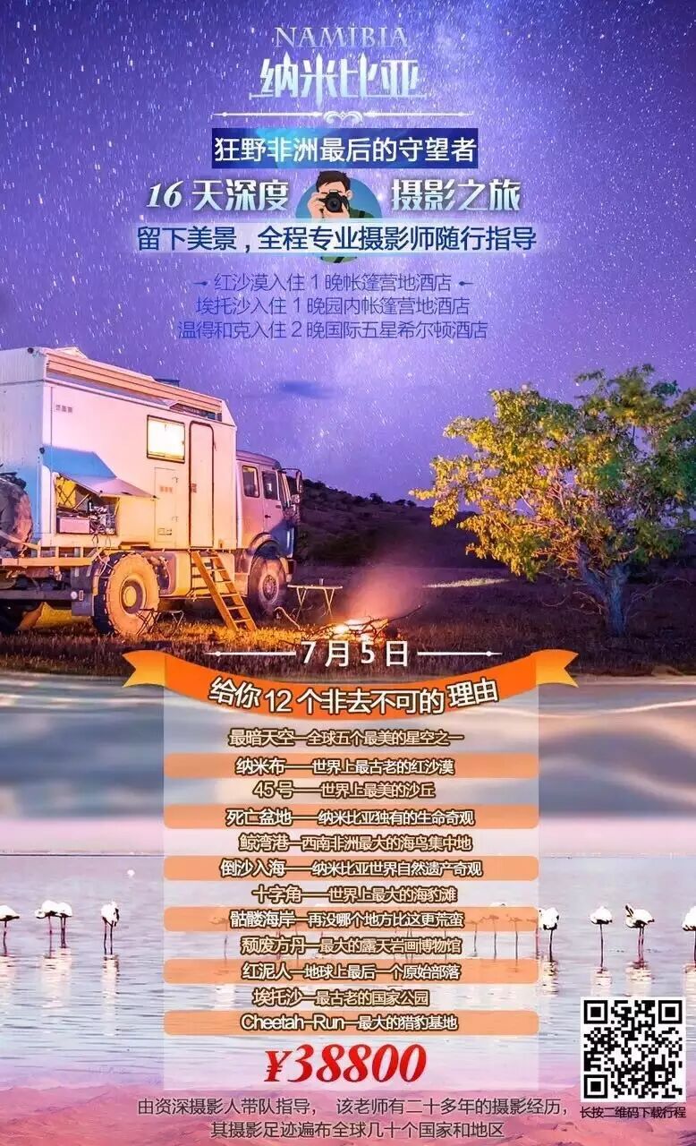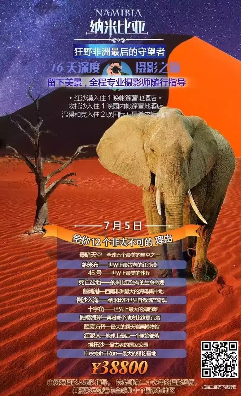 在纳米比亚,驾驶四轮驱动车的探险家们会沿着骷髅海岸直行,这是一条十分偏远的沙漠海岸带,扑朔迷离的雾海笼罩着堆满鲸的白骨和生锈船骸的海滩,这些都源于已成历史的捕鲸作业。早期的葡萄牙水手称这里为“地狱沙滩”。值得庆幸的是,如今这里呈现出截然不同的生机。沿着海滩和内陆驱车,穿梭于沙丘之间,驶过盐池和化石层,翻过参差不齐的山脉,经过峭壁峡谷,感受世界上最动人心魄的美景。若想拥有非同寻常的体验,乘坐轻型飞机可以让你欣赏到鬼斧神工般、类似月球表面的荒芜景象,令人难以置信。