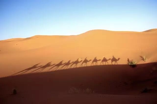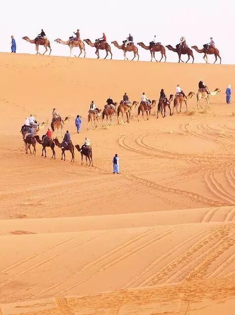 备好鞍具,骑上骆驼。要感受撒哈拉沙漠的神奇魅力,骑骆驼是最传统且最具氛围的方法。尽管在有些人眼中,骑行流浪并非易事,但对于那些想体验该地区柏柏尔人游牧生活的游客而言,骑骆驼是“不二之选”。沿途,你不仅能看到闪着微光的连绵沙丘,还有城堡、绿洲、橘黄的日出及鲜红的日落美景。乘坐“沙漠之舟”跋涉一天后,你可以在你的贝都因毛毡帐篷中放松身心,仰望璀璨星空。最终,你会在远处传来的部落鼓声的陪伴下进入梦乡,梦见你的沙漠祖先。