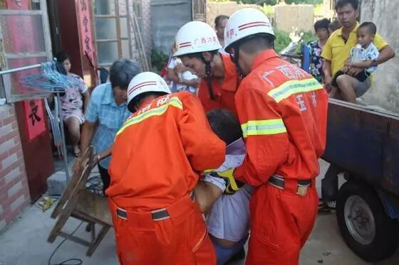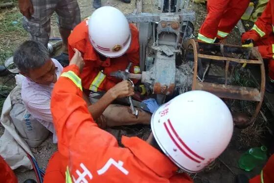 根据现场情况,指挥员立即组织官兵实施救援,在保护好被困人员的情况下,先利用液压破拆工具组将收割机的前轮进行剪切和扩展,又利用砂轮机对收割机前轮进行切割,经过50多分钟的紧张救援,最终于8时02分成功将老人救出,并移交给现场的家属送医治疗。