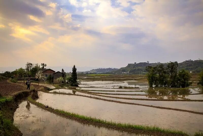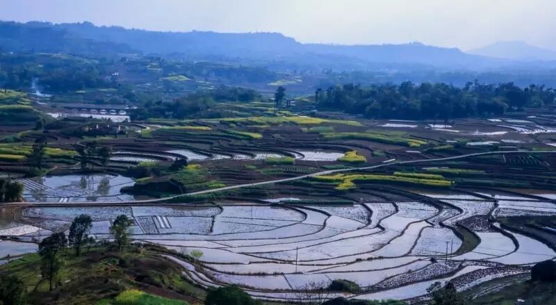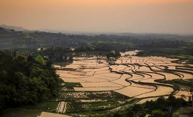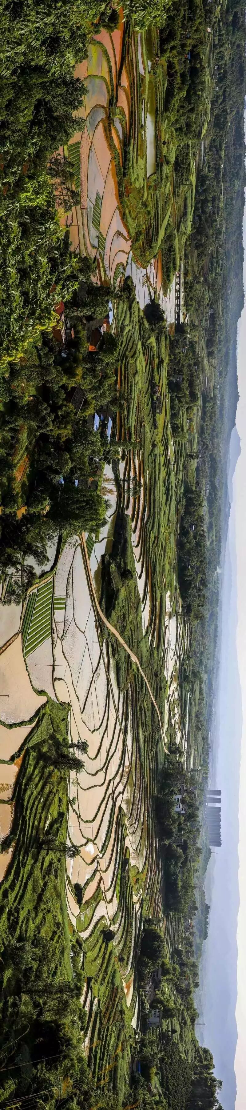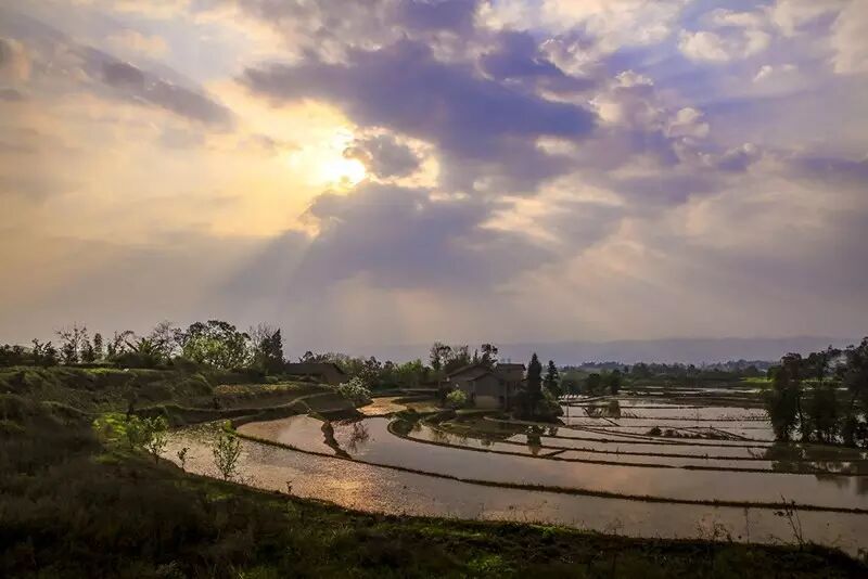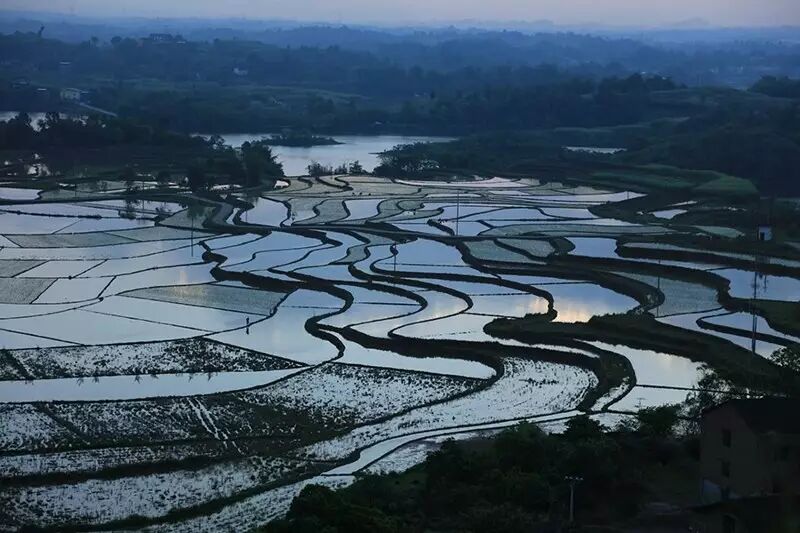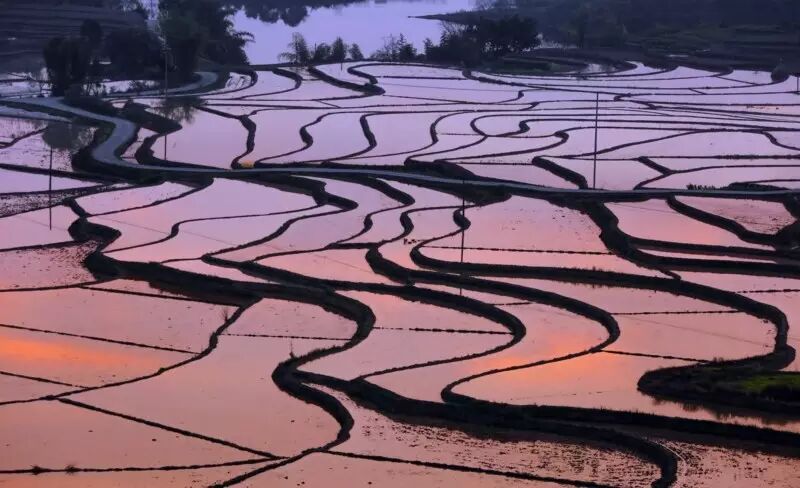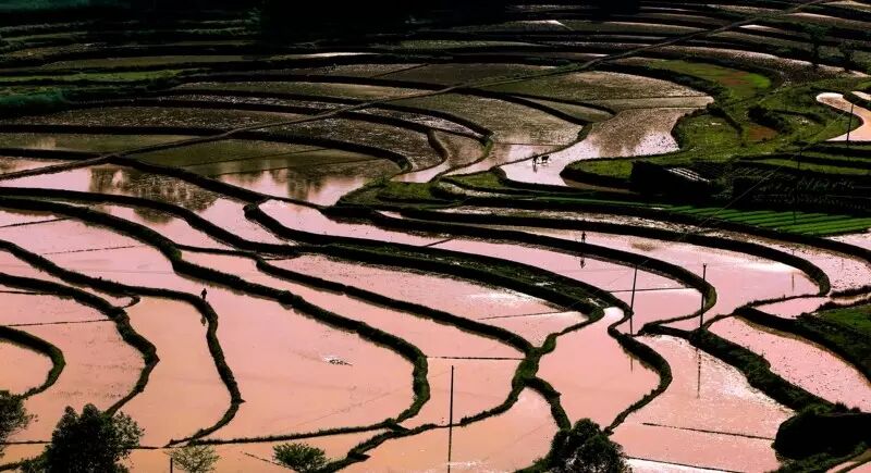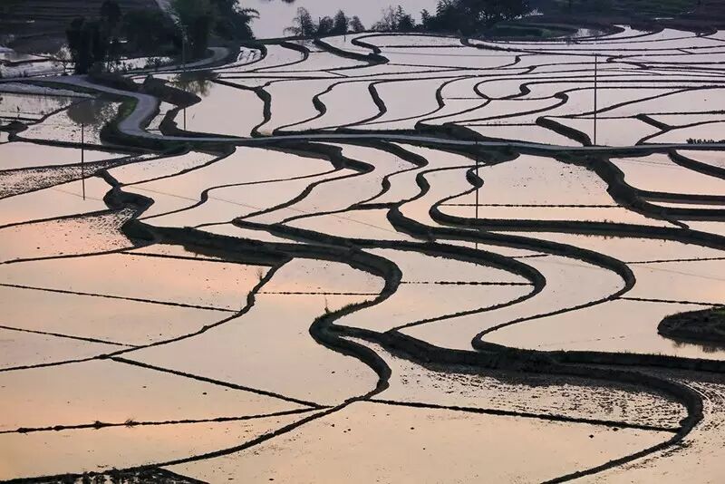蓄满水的梯田,在光线的照射下,那一刻是在光与影的完美结合,令人心静如斯。