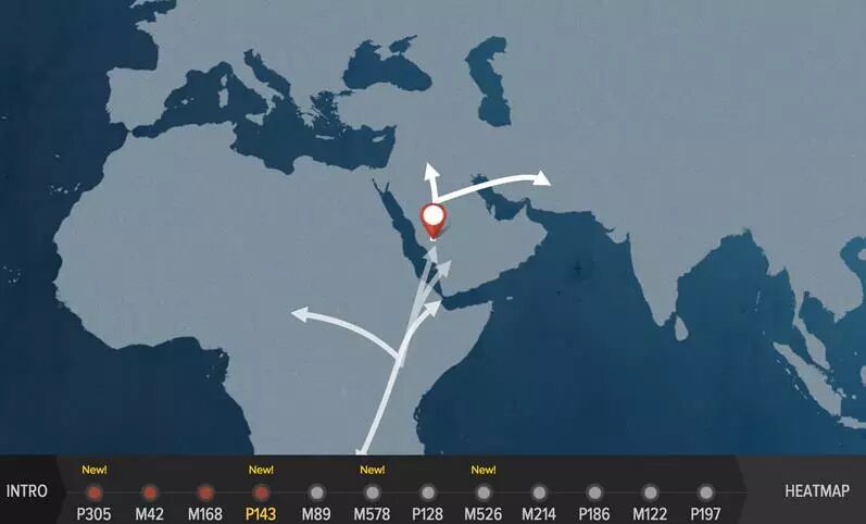 图3:“亚当”的“儿子”P305 从东非出发到达红海南端