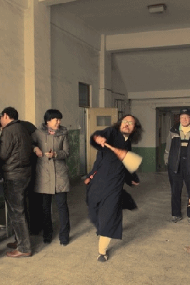只要看到有镜头在,或正襟危坐、或玉树临风、或仙风道骨状等。表演丰富,融合气功、太极、街舞等成份,或斗笔乱飞、墨花四溅,或地摊杂技如双钩书、空心体、左手书、反书倒书、嘴巴、脚丫执笔…