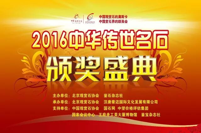 继2015年中华传世名石的成功举办后,由北京观赏石协会、中国观赏石大数据鉴石网和鉴石杂志社发起,中国观赏石协会参与支持的2016中华传世名石遴选活动,通过历时一年的全国征集遴选工作,于2016年12月20日上午第78届北京“爱石日”之际,在北京王府井工美大厦博物馆隆重举行展评活动。最终评选出2016年度100方中华传世名石和传世名石的十大名石。