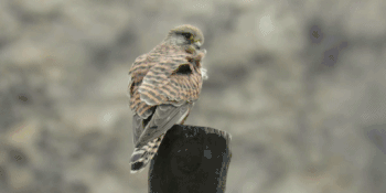 人们俗称的“鹰”站立在木桩上,实际上这是一只红隼 摄像/高向宇