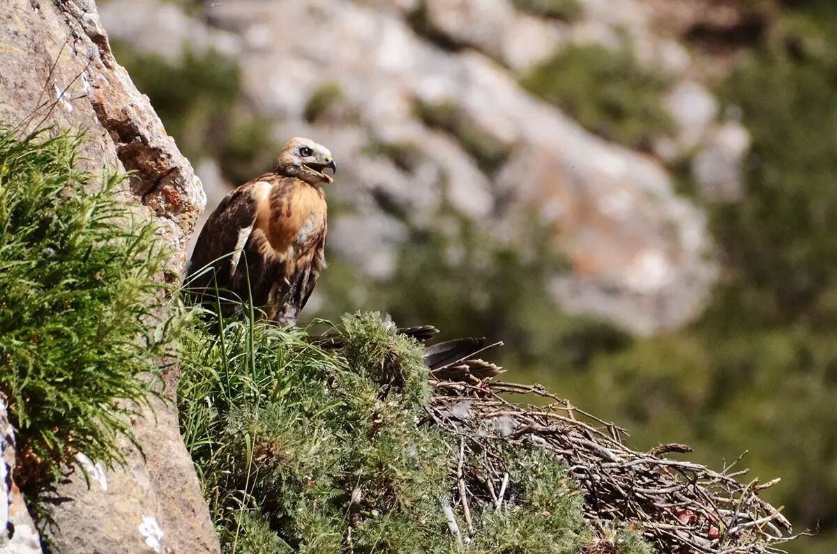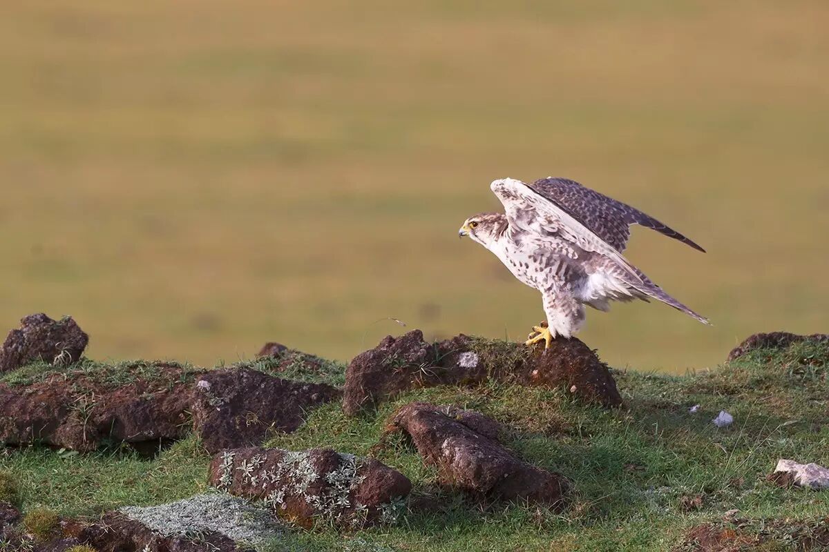 尽管大鵟和猎隼都偏好在开阔地觅食栖息,也经常停落在地面,但是它们都需要在较高的岩石峭壁上筑巢繁殖。大鵟也利用电杆等人工建筑物筑巢。猎隼和大鵟是小型哺乳动物的主要天敌,对维持草原生态平衡有重要作用。