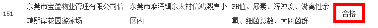 那么,麻涌泳池水质情况如何?昨天,市卫生局发布了2016年东莞市人工游泳池检测结果,麻涌人常去的4个游泳池也在抽检名录中。