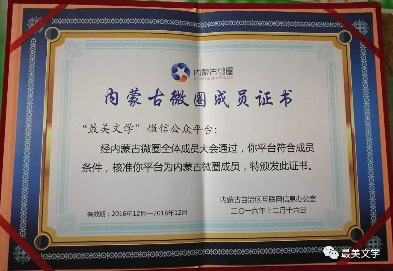 回顾2016年,最美文学公众平台从最初的小平台如今已发展成为内蒙古微圈协会会员,平台关注量超6000+,平台成员遍布全国各地。