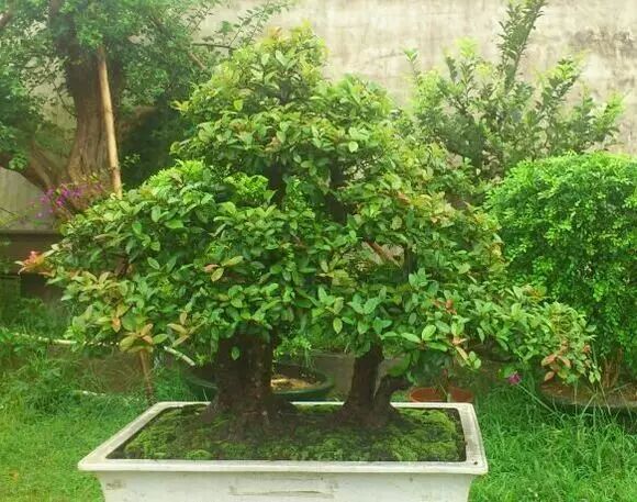 说明:这盆《五牛竞秀》,是目前业界为数不多的红牛盆景作品之一,曾在本园参加山水廉江盆景展览,有幸仍有张不太清晰的摘叶照,一并发上大家分享!——廉江盆景园小汪