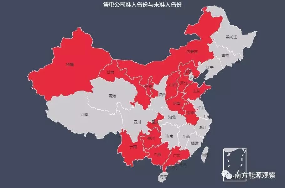 图6 各省(市、区)售电公司准入情况(红色区域表示已经准入)