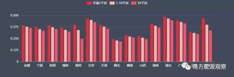 除榆林外,云南、山西、贵州的输配电价对110千伏及以上高电压等级大工业用户来说吸引力是最大的。而安徽、湖南、北京、冀南等四地的价格则高于其他省(市、区)。