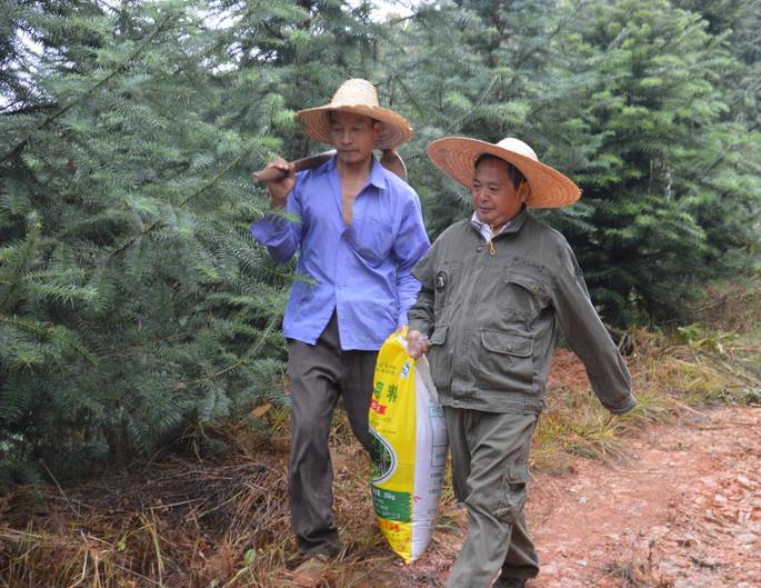 每年,广西林科院与华沃特肥业会安排技术人员,前往示范林进行调研,跟进杉木的生长情况,采集杉木的叶子和样土,拿回实验室进行研究,适时调整配方肥比例,促进每一片杉木林高产优产。