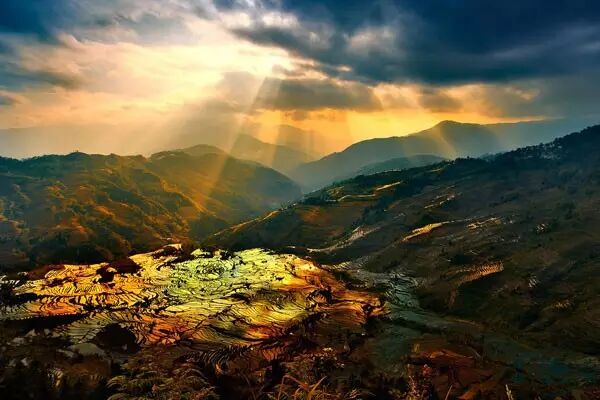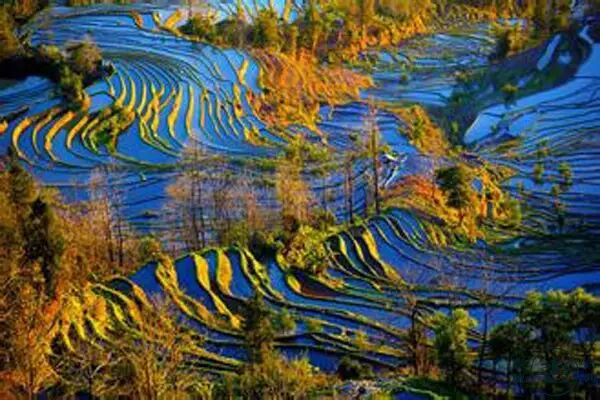 元阳梯田位于云南省元阳县的哀牢山南部的元阳梯田,是哈尼族人世世代代留下的杰作,被摄影爱好者称为“最神奇的大地雕塑”。