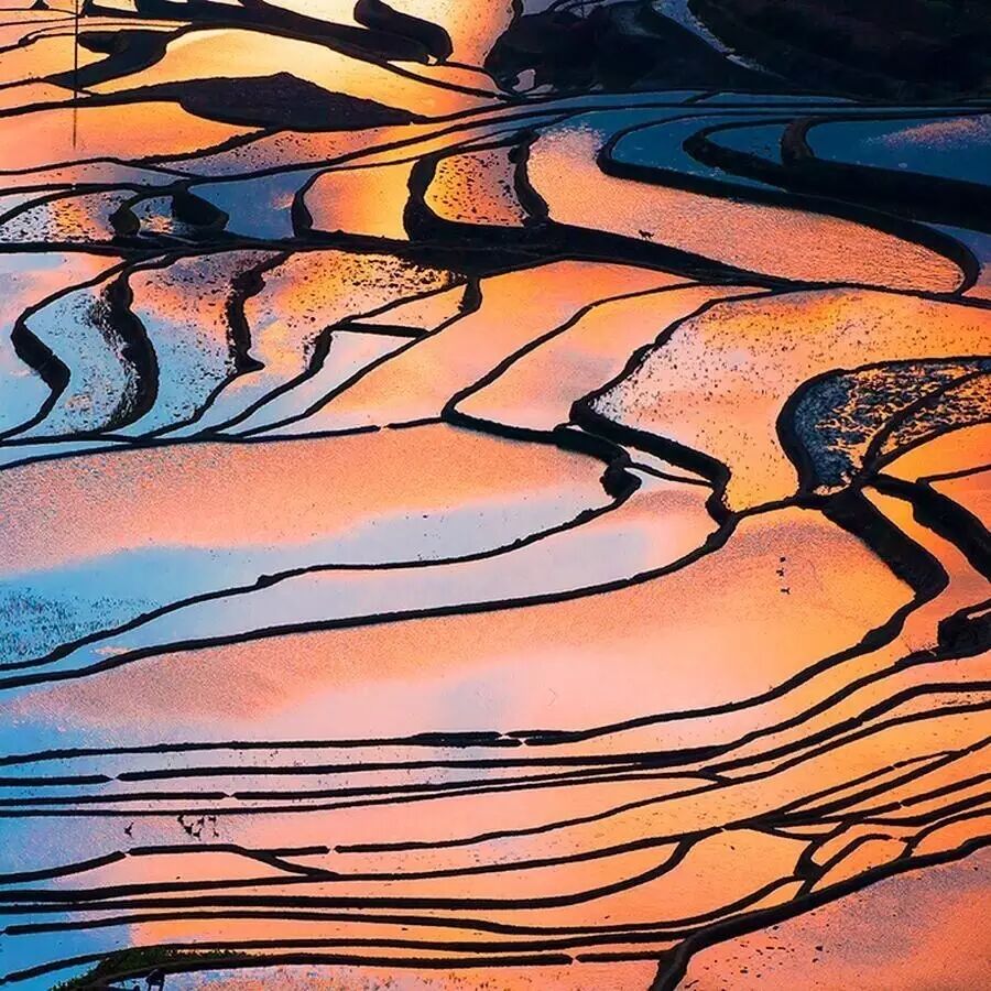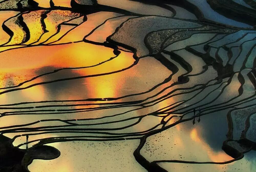 时至今日,梯田所承载的早已不仅仅是简单的生产与生活,层层而上的错落之美造就了它绝佳的视觉效果,当阳光一级级爬上如镜般的梯田水面,万千华彩之下,犹如人间仙境。