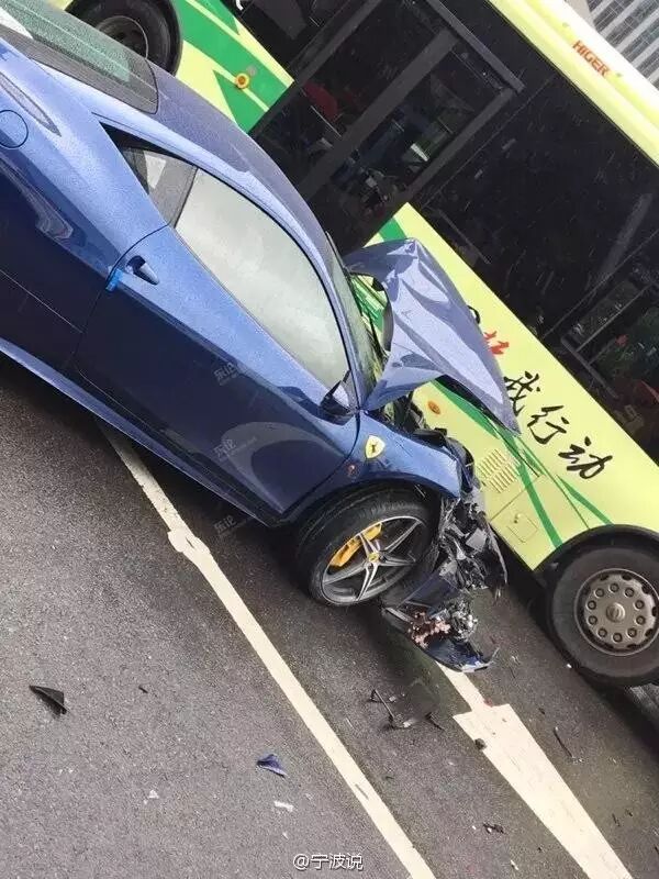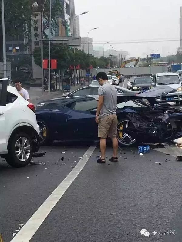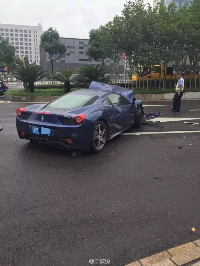 9月29日上午10点30分,宁波南部商务区水街出来的十字路口,一辆蓝色法拉利跑车与一辆白色轿车发生追尾,据目击者说,只听跑车引擎很大的嘈杂声,几秒后听到“砰”的一声,原来发生追尾了。现场并无人员受伤。