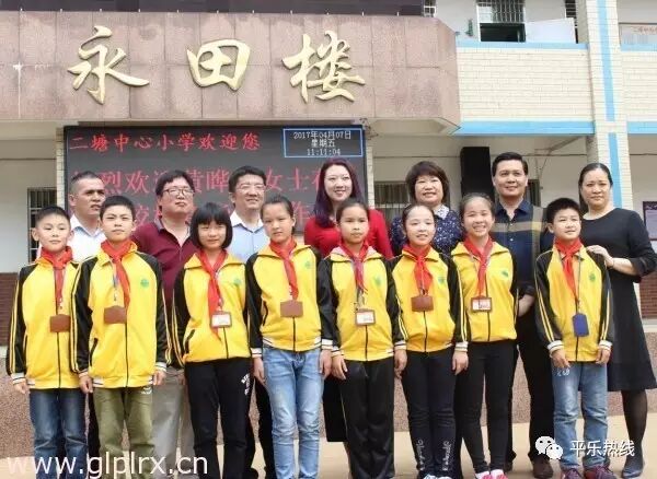 4月7日,加拿大广西总商会副会长、广西枫大物流集团董事长黄晔华女士专程到我县二塘小学,对去年捐赠价值15万元的图书、电脑等物品创建的“枫华书屋”使用情况进行回访。县委常委、统战部部长杨海芬以及市、、县教育局等相关部门领导陪同回访。