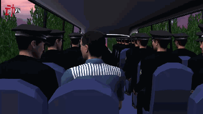 ▲从看守所到枪决地点,大巴开了40多分钟。看管坐在王某旁边,时不时递上根烟。