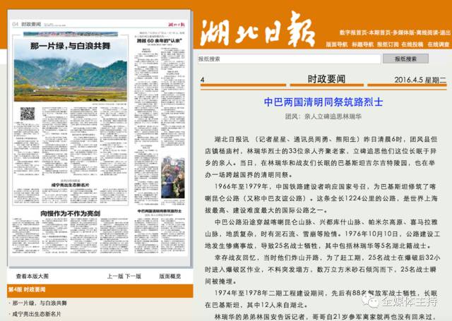 当然,命题者并不全是从央视新闻中选取稿件,比如下面这篇试题中的稿件,就是从纸媒《湖北日报》上选取的,原标题是《中巴两国清明 同祭筑路烈士》,类似内容在央视的多档新闻节目中也都有播出。