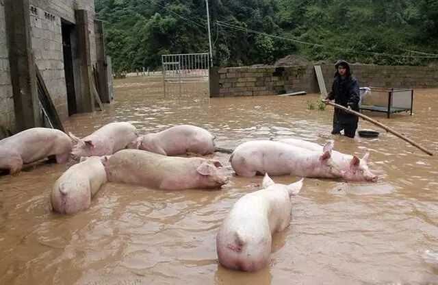 小猪被淹死:湖北、安徽等多地的养殖户都在反映,由于雨势又大又猛,猪场很快就进水,而那些来不及转移的小仔猪,遇水就被淹死了。按出栏期推算,这些生猪要到春节前才能上市。