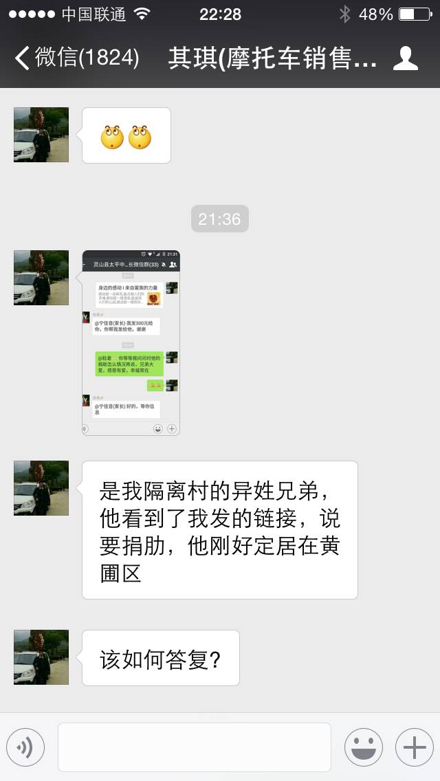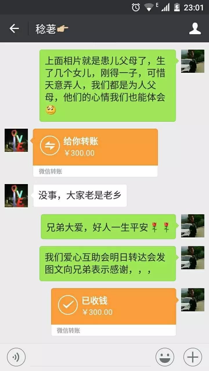 看了大家有什么感受,我无法得知,我是一定要把它发布到网上的,不是因为别人捐款给了我们的宗亲,而是因为这种精神,让我们汗颜,我们喜欢说我们如何热爱我们的家族,我们喜欢说我们如何有爱心,在一个外族人眼里,我们所做的是如何的渺小。目前这笔钱已经捐爱心群代收,待到回访小朋友的时候,再转交了。
