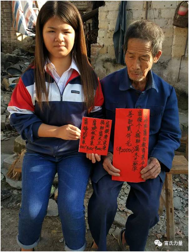 宁木兰和爷爷宁益光接受宗亲捐献爱心善款
