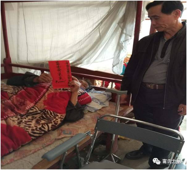 由宁海新宗亲核实提供,陆川甯氏宗亲会长宁荣光审核,上报广西甯氏爱心互助会。经互助会管理委员会经过认真讨论、审核通过后,积极发动甯氏爱心成员捐献爱心义款。《甯氏春秋》微信公众号发表题为《战士羸弱卧床榻,儿子独撑病残家--宁伟奇病残家庭写照》的文章,让更多甯氏兄弟了解老宗亲的实际苦难。各位爱心成员和群外的许多爱心宗亲们纷纷伸出援手,捐献爱心帮助这位饱受困苦的老宗亲家庭。文章点赞款共筹得915.74元,《甯氏春秋》公众号实捐1000元,加上广西甯氏爱心互助会的爱心款,共两千五百块善款,委托陆川甯氏宗亲会领导前往慰问宁伟奇老宗亲。