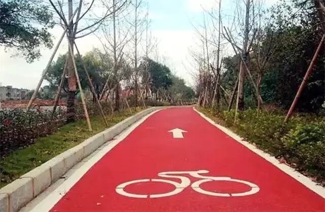 ▲绿道为水泥路面,两边有绿漆,十分醒目漂亮