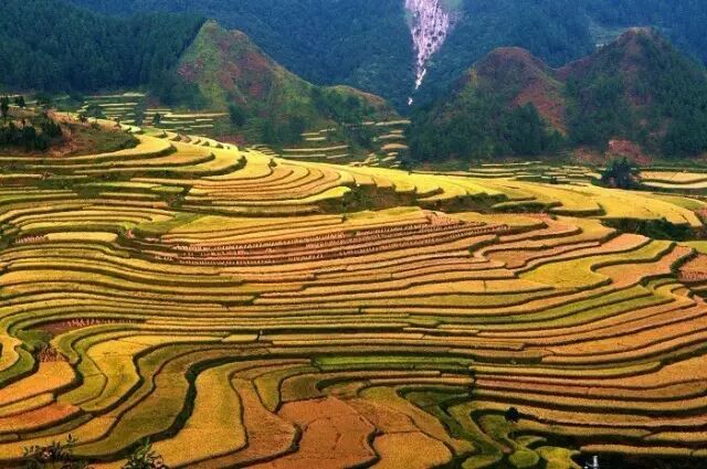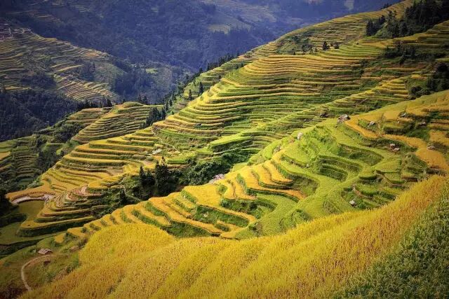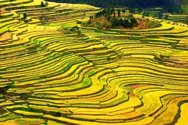 每到秋天,高要梯田的稻谷逐渐成熟,大地充满了一种令人欢快愉悦的金黄色,秀美如画。