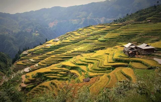堂安的梯田十分壮观,金黄色的稻谷像画框一样勾勒出梯田的轮廓。