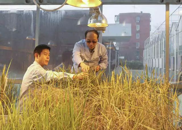 1月25日,“农药高效低风险技术体系创建与应用”项目负责人郑永权研究员和科研人员在位于北京的中国农业科学院植物保护研究所温室内检查科学用药农作物生长情况。 殷刚 摄