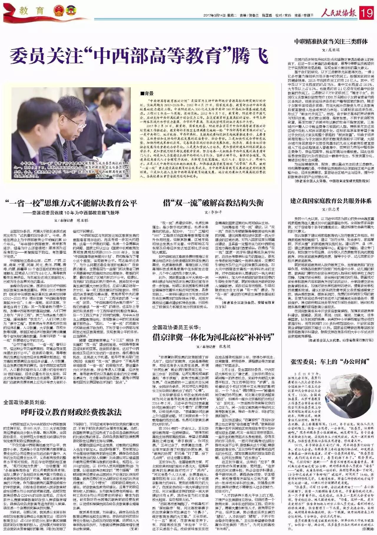 今年,“双一流”背景下的中西部高等教育腾飞成为委员热议的焦点之一。3月7日,教育界别联组讨论会上,。会上,黄德宽委员呼吁以“双一流”建设为契机,努力破解高等教育区域发展失衡问题。