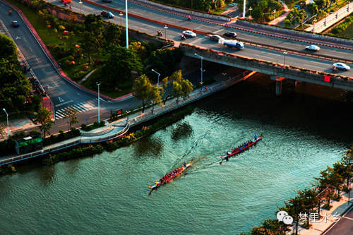 香堤水岸制高点俯拍,影友必备,但离冲线区略有距离有些远。如果您认识香堤河岸的业主,就可以登高望远,轻松拍下全民看龙舟的热闹场面啦!