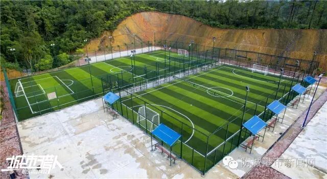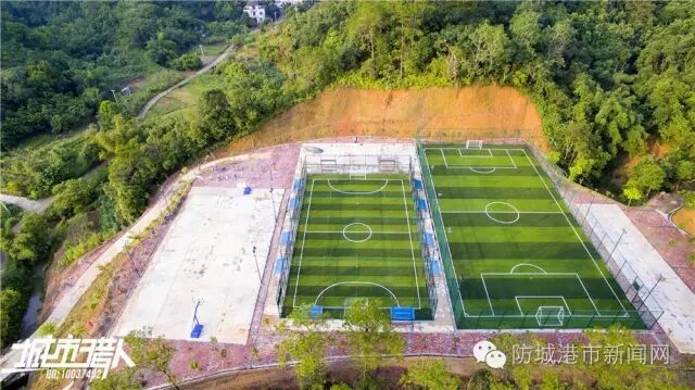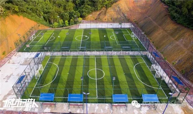 一大一小2个足球场,小的是笼式五人制足球场