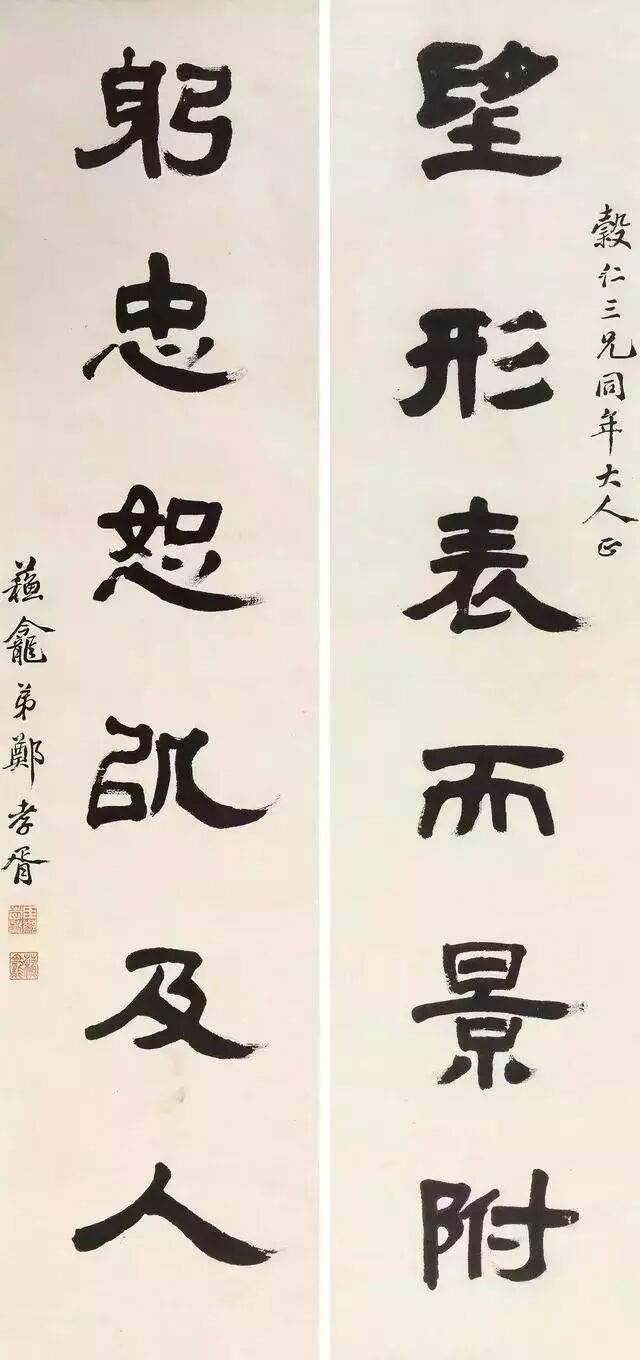 郑孝胥不仅工诗,而且善书,书名极大。他善长楷书、隶书,学颜真卿、欧阳询,受益于北魏碑版,其作品字势偏长而苍劲朴茂,开创了潇洒俊逸、凌厉干练的独特风格。他的行楷不仅流畅飞动,而且劲道十足,这是历代书法家都难以达到的极高境界。